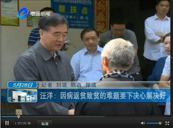 5月19日上午,中共中央政治局委員、國務院副總理汪洋在湖北省委書記、省人大常委會主任李鴻忠和省委副書記、省長王國生等分別陪同下來到恩施州龍鳳鎮,親自考察了由中國導醫網援建的龍鳳鎮首家村級工作站-青堡村健康工作站。龍鳳鎮青堡村衛生所女醫生、導醫網基層健康工作站余沛鑫站長,被突然到訪的國務院副總理汪洋,給嚇呆了。但她很快便緩過神來,以前只在電視上看見過汪副總理。這是她平生見到的最大的官,這怎不令她激動呢。據余站長回憶,當時汪洋副總理微笑著走過來,一進衛生所,就便問:“這些醫療設備,是你們花錢買的嗎?花了多少錢啊?”余站長吱吱唔唔地回答副總理的提問:“政府、政府扶持的,是衛生局和北京公司導醫網捐贈的,不要錢……”再后來,她也忘記了汪洋副總理說了些什么。5月28日,她看到恩施州電視臺新聞播出了汪洋副總理的講話:“因病返貧致貧的難題要下決心解決好”。她似乎明白了副總理到訪健康工作站的原因,還是與老百姓看病難看病貴的這一社會難題有關啊。作為中國導醫網龍鳳鎮基層健康工作站19位站長中的一名,她深刻地感受到了自己身上的擔子,原來是那么的重……