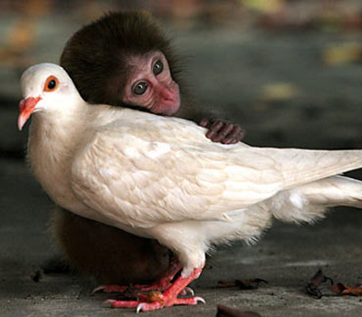 這只孤單的小獼猴一直悶悶不樂,直到有一天,它看到了一只白鴿